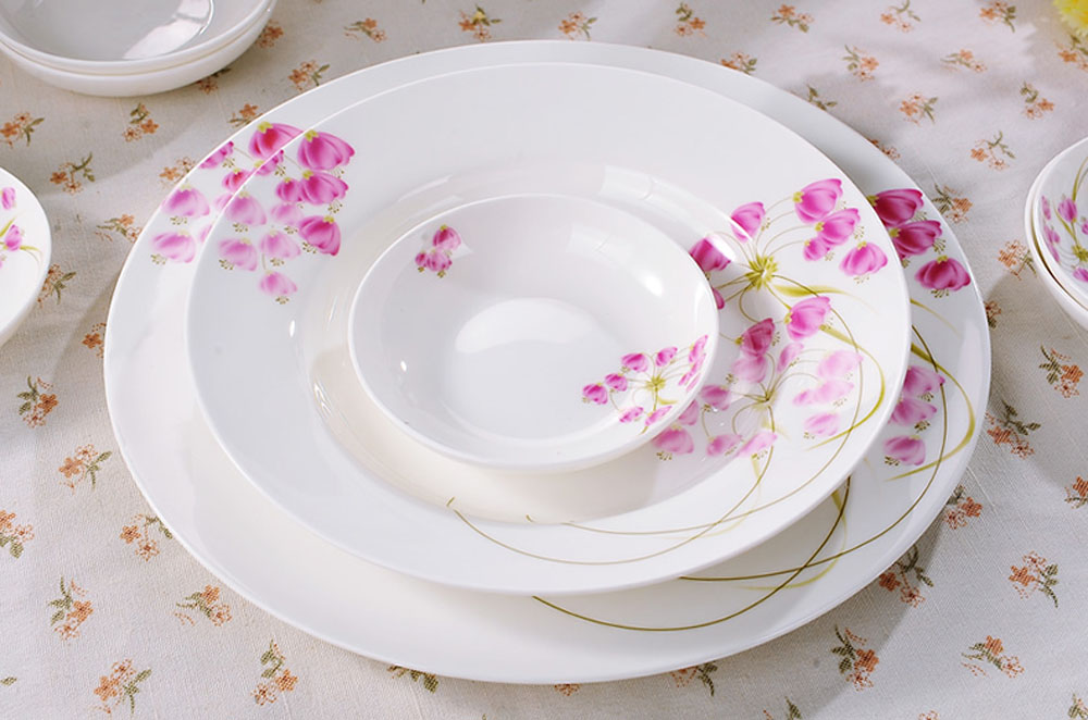 景德镇骨瓷餐具价格到底是多少呢?我们先来了解下一套景德镇骨瓷餐具的配置吧。常见的景德镇骨瓷餐具套装一般是28头和56头。常见56头配置有碗(10件)、味碟(10件)、8寸深、平盘(10件)、小汤匙(10件)、筷子架(10件)、品锅(1件)、鱼盘(1件)、*缸(1件)、牙签筒(1件)、大盘(1件)、大饭匙(1件)共56件。28头配置有常见56头配置有碗(6件)、味碟(6件)、8寸深、平盘(6件)、小汤匙(6件)、筷子架(10件)、品锅(1件)、大汤匙(1件)、*缸(1件)、牙签筒(1件)、共28件。现在有些厂商为了方便用户使用,特意设置了一些58头,60头配置套装,特意增加了调味罐,筷子筒等配置。