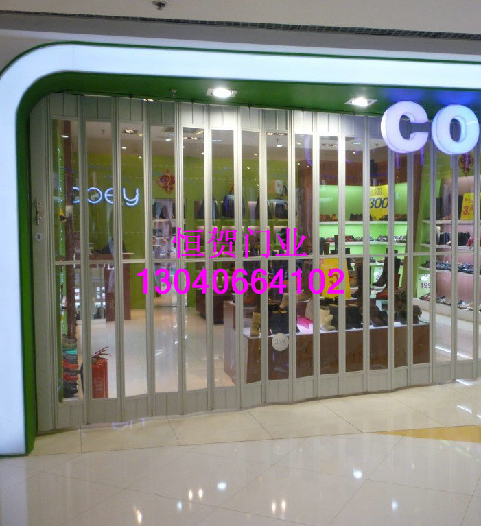 机场铝合金水晶折叠门 上海恒贺卷帘门有限公司联系021-62034840 手机13040664102---15902159575 联系人:蒋 恒贺科技新型商水晶门、适用于:大型商场、城市街区、商铺、地铁商场等,具有性功能的商水晶门,从门外到往里看能透出琳琅满目的商品,使商铺尽显品味,店铺装饰陈列新理念,24小时广告橱窗效应,是替代普通防盗卷帘门的佳产品。 材与结构:电动商水晶门的主要材为不锈钢,由水晶门片连接组成,强度高,抗撞击,防风沙,性强,工艺结构科学合理。帘片两端采用超强耐磨封头加以固定,使电动卷帘在运行时更顺畅更静音。门体外观典雅,安装效果佳,与原建筑体相和谐。