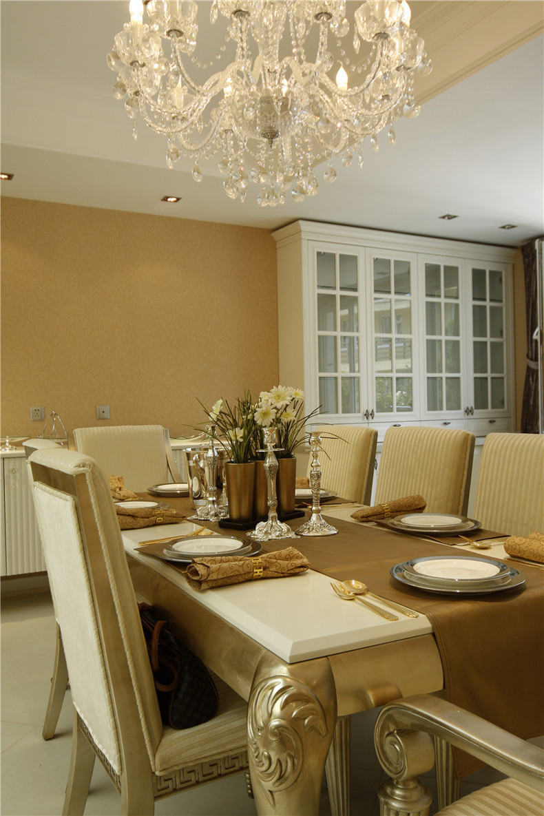 餐厅整体都是金色,与客厅的整体风格一致。卧室延续了客厅的低调奢华风,并多了一份柔软,雅致。